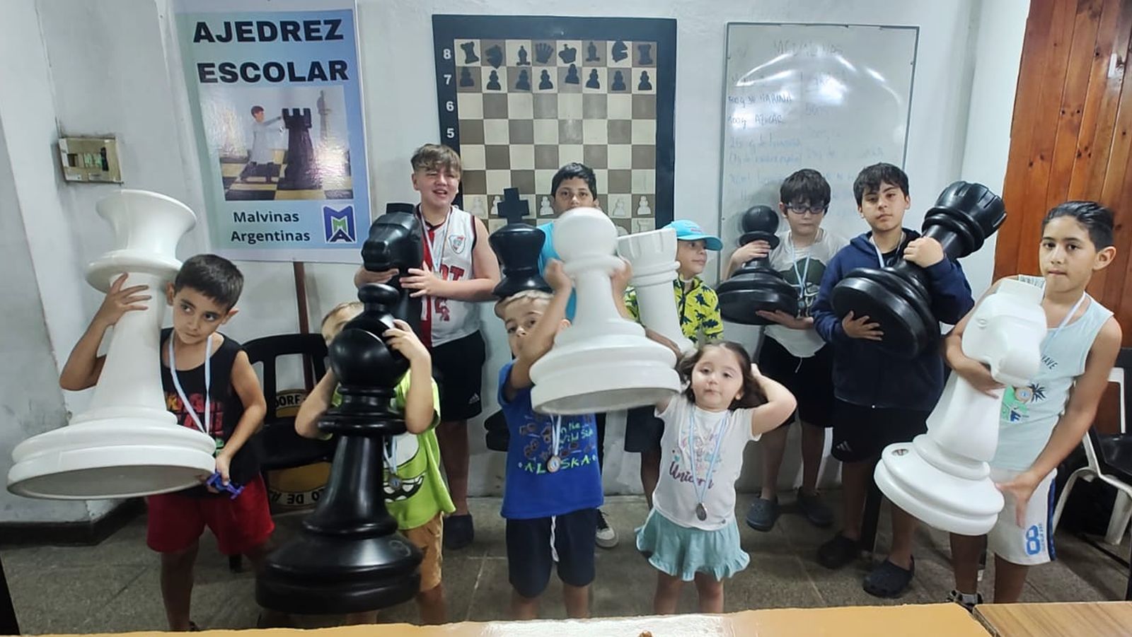 El martes 23 de diciembre, mientras afuera llovía un montón, hicimos un torneo con los chicos que vinieron a la clase de ajedrez. Participaron todos, hasta los más chiquitos. Estuvieron Dylan, Máximo, David, Daivid, Renzo, Joaquín, Eric, Camilo, Vicente y Lucia. Si bien el ganador absoluto fue Dylan, todos recibieron medallas y bolsos de recuerdo. También sorteamos un juego nuevito, que llevó David. Por supuesto, brindamos con los chicos y sus papás, con nuestros deseos de unas felices fiestas y un mejor 2026. |